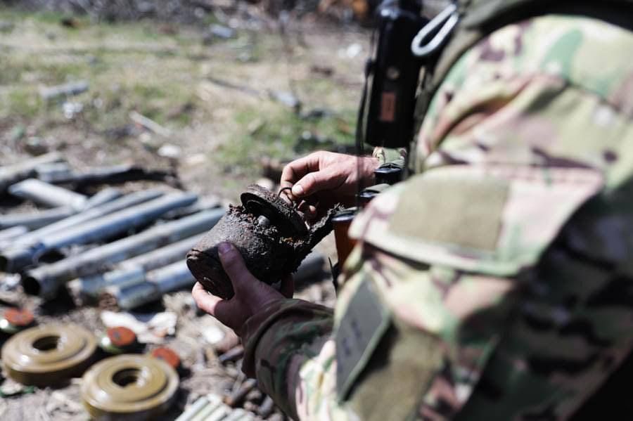 «Після розгромлення нашою артилерією ворожої колони, боєприпаси з неї розлетілися по усьому периметру. На конкретно цій ділянці ми працюємо вже 4-й день та ще невідомо скільки потрібно часу, щоб повністю зробити її безпечною», – зазначив сапер НГУ «Кривий».