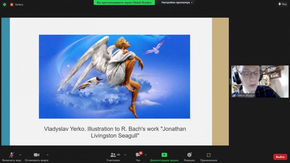 Студенти 4 курсу факультету філології та журналістики Анастасія Клемент і Олексій Бридун (група ІН-48) у своїй доповіді представили творчість сучасного американського письменника Річарда Баха. Особливу увагу доповідачі звернули на філософські проблеми в повісті-притчі «Чайка Джонатан Лівінґстон» та її актуальність у наш час.