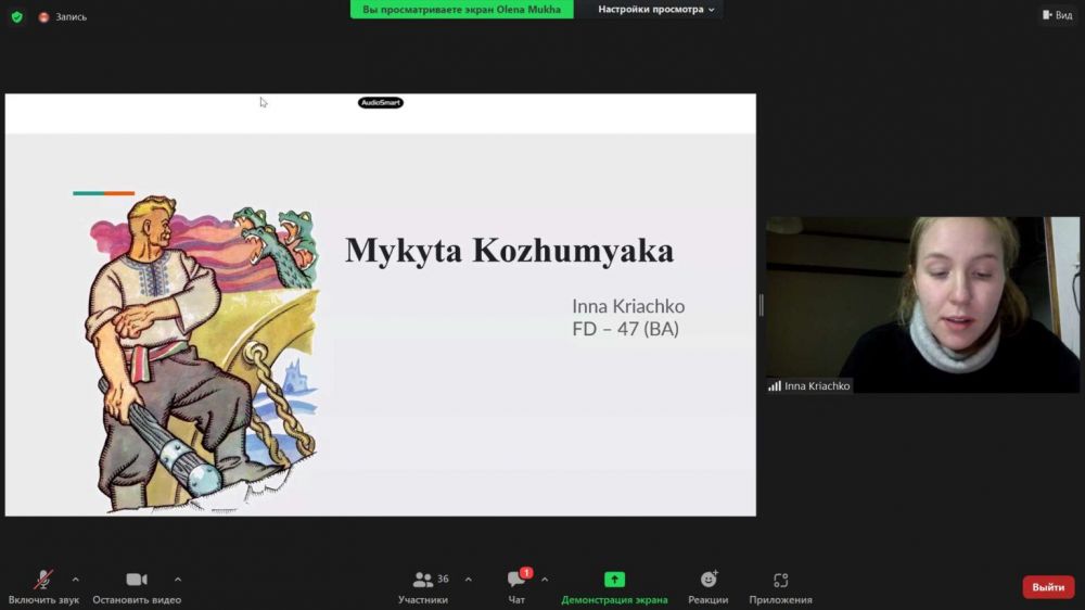 Ще одну доповідь на науковому семінарі представили здобувачі освіти ПНПУ імені В. Г. Короленка – студенти 4 курсу Інна Крячко (група ІН-48) і Влад Ганнущенко (група ГФ-48) та магістранти Олена Муха (група ГФ-56) і Олексій Мішуточкін (група ІНМ-5). Вони висвітлили героїчний і моральний зміст українських народних і літературних казок, акцентували ідею незламності українців перед важкими викликами, а також розкрили найкращі риси українського національного характеру.