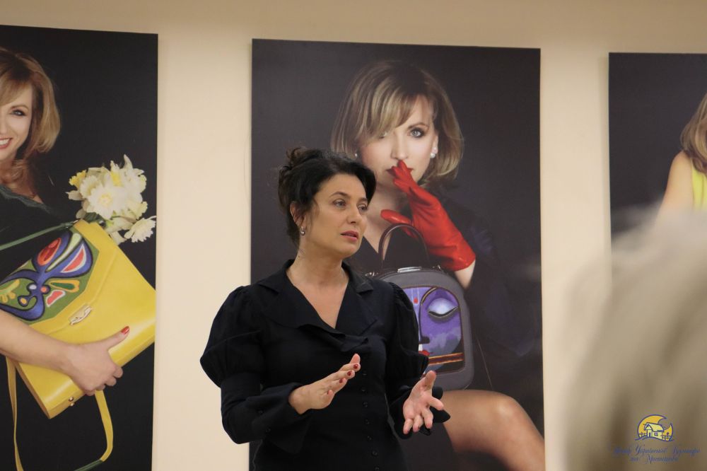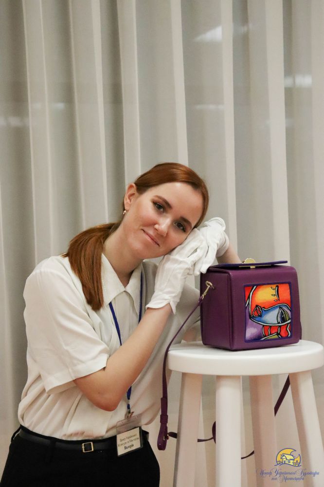 Олеся Сахро, в свою чергу, відповідаючи на запитання гостей виставки, розповіла про своє дитинство, шлях до успіху, поділилася процесом створення сумок та розказала, що надихнуло її на створення авторської техніки вишивки.